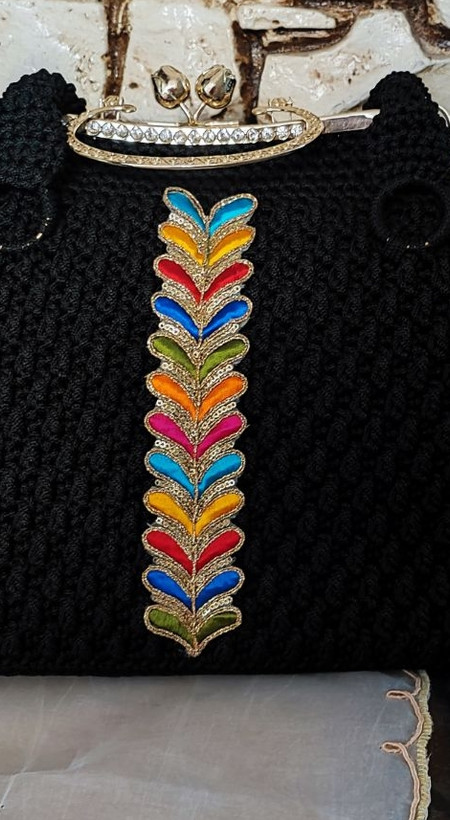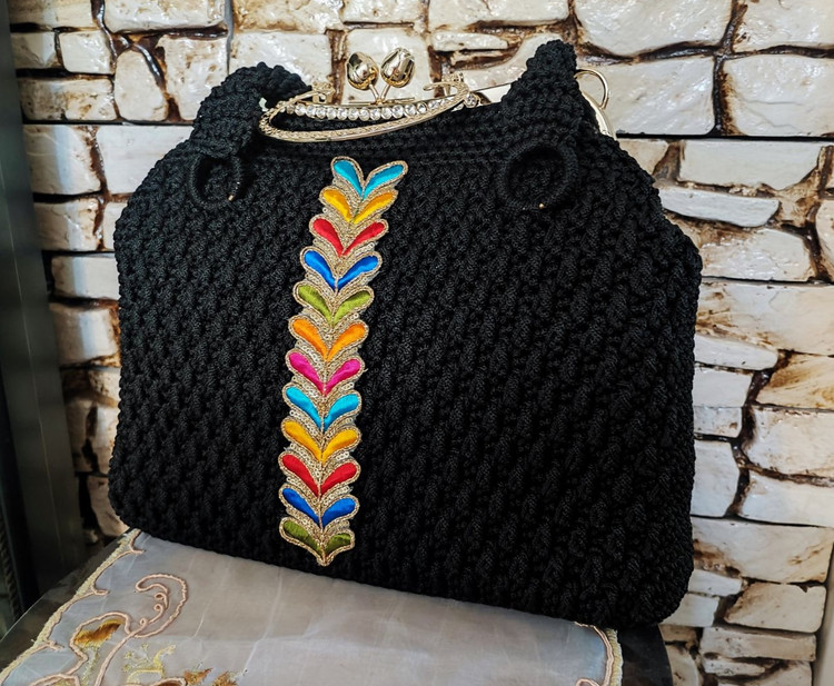 کیف دستبافت مجلسی، بافته شده با نخ درجه یک، ابزارکاری شده برای ایستایی بهتر، آسترکشی شده، دارای یک جیب عابربانک، قابل شستشو برای مراسم و مجالس های بانوهای خوش پوش☺️